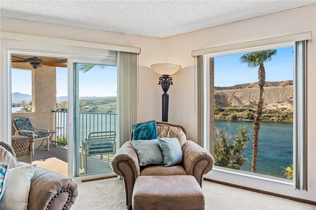 Dream of living in a stunning Colorado riverfront condo? Imagine enjoying the seasonal delights of river life, then locking up without a worry. This beautiful two-bedroom, two-bathroom condo offers breathtaking views of the Colorado River and Newberry Mountains. Savor Arizona sunsets from your patio, or start your day with coffee by the river's gentle flow. Fully remodeled kitchen makes it a dream to cook for your friends. Front balcony on the master is a great way to enjoy the piece in the morning. Enjoy fantastic amenities like a beach area, community pool and spa, tennis courts, and a boat dock for your water adventures. With over 1,000 square feet, this spacious condo features ample living and entertaining space, with two generously sized bedrooms for comfort. Experience the 4th of July fireworks over the river in Laughlin from the comfort of your home. Embrace a wonderful life on the Colorado River, condo style!
